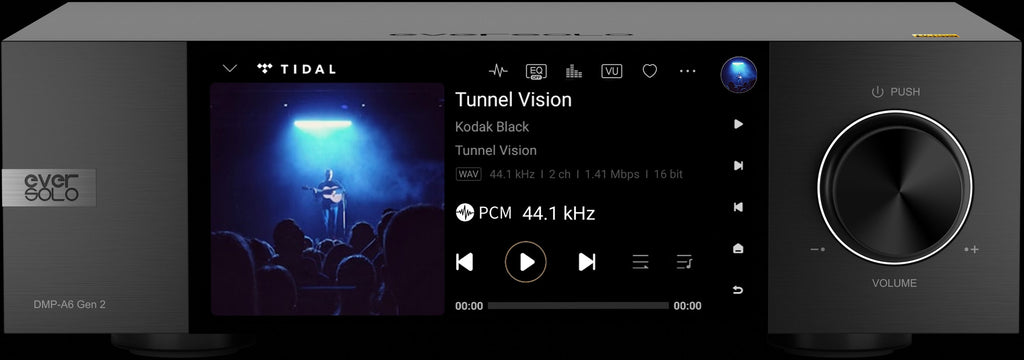 Other amazing features of the original DMP-A6 remain, such as a quad-core processor and large built-in memory, rich digital input and output ports, Eversolo's EOS audio engine developed in-house, globally bypassing SRC restrictions, HDMI DSD multi-channel output, dual ESS 9038Q2M professional DACs, 6" large LCD colour touchscreen, a fully balanced differential circuit and professional audio tuning.